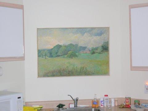 Robert made many sketches and paintings of Clayton Hall not long before it was demolished in 1977. A beautiful example of these paintings is now in the possession of Jack Frane, who kindly provided the following images of the painting in its context in Mr. Frane’s home. The view of the Hall is generally to the northwest.