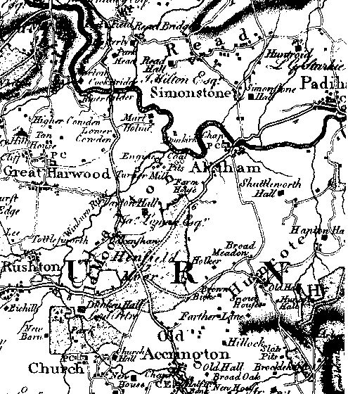 Yates 1796 Clayton Hall: Clayton Hall between Great Harwood, Rushton and Altham