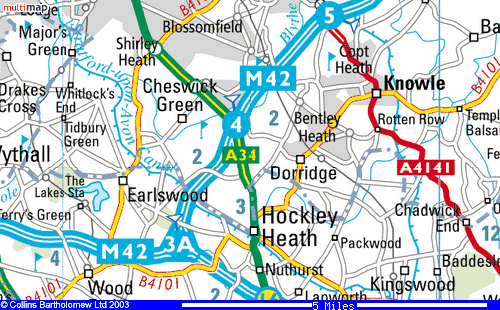 b. Knowle is located about two or three miles east of the intersection of the A34 with the M42: