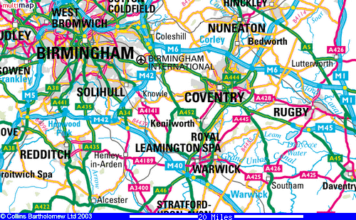 Stratford-upon-Avon, home of William Shakespeare, can be seen at the southern edge of the above map.