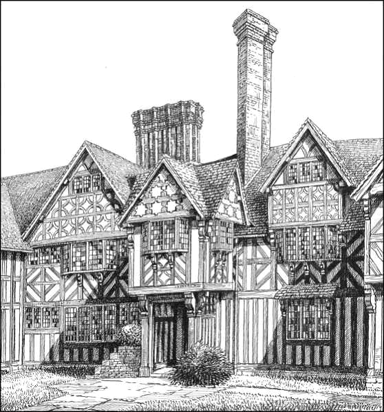 A book by Ditchfield5 on the manor houses of England includes a sketch of Grimshaw Hall as the Frontispiece of the book as well as a brief description of the Hall in the section on materials of construction. The excellent Frontispiece sketch is shown below.