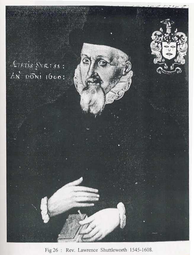 Sir Richard did not have any children. Smithills reverted to the Barton family and Gawthorpe passed to his brother, Lawrence Shuttleworth, B.D., a man in his middle fifties. For seventeen years he had been Rector of Whichford in Warwickshire, a living in the gift of the Earl of Derby, which he owed very probably to his brother’s influence. Although he remained in the Church, and died and was buried at Whichford eight or nine years later much of his time must have been diverted from his calling, for he had succeeded to his brother Thomas’ stewardship on the latter’s death in 1593. His clerical training stood him in good stead, for the Gawthorpe and Smithills accounts were kept much more methodically by him than by his younger unclerical brother.