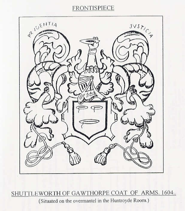 Figure 6. “Shuttleworth of Gawthorpe Coat of Arms, 1604” as presented in Conroy1 (frontispiece), who notes that it is “Situated on the overmantel in the Huntroyde Room” (of Gawthorpe Hall.)