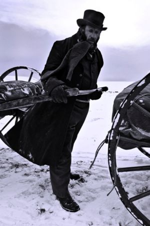 Dramatization of Man Pulling Handcart through Snow