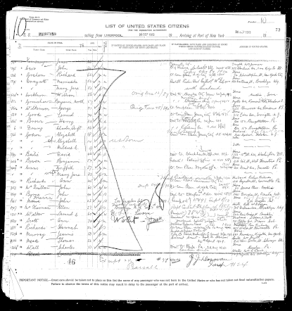 Examination of the 1904 ship manifest indicates that 40-year-old Benjamin arrived from Liverpool on the Oceanic on September 20, 1904 with his 16-year-old son, Joseph. His final destination was North Dover, Ohio. He had previously visited the U.S. (Rhode Island) in 1884. He was apparently untruthful about his age (which should have been 48) when he reported it at 40 years old.