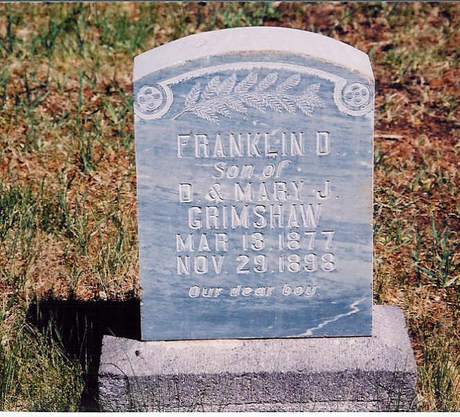 1898 – November 29di our son Franklin D. died and was interred in the Mountain View Cemetery in Beaver