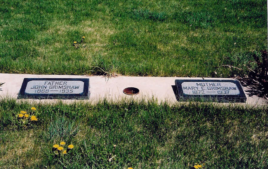 Figure 11. Graves of John Grimshaw, oldest son of Duckworth and Mary Jane, and his wife, Mary Elizabeth (Bradfield) Grimshaw