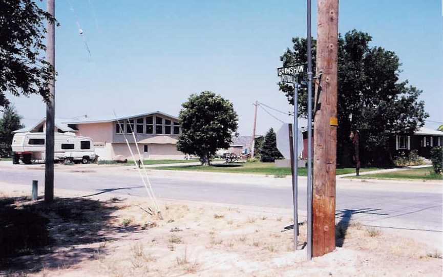 a. Northeastward view of corner of Grimshaw Lane and Midvalley Road in Grimshawville. The two buildings across the road occupy the former homesite of William Grimshaw. Note the street sign indicating Grimshaw Lane.