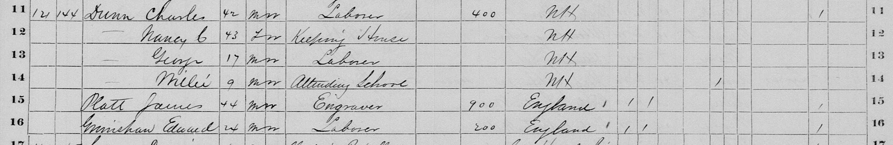 Edward Grimshaw was living in Dover, NH in 1870 with Charles and Nancy Dunn with profession listed as “Laborer”.