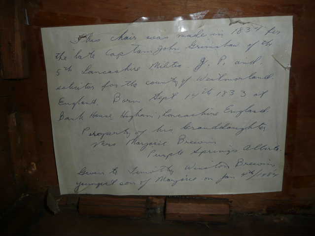 In July 2008, Patricia Brewin provided the following interesting pictures of a chair that was made for John Grimshaw when he was no more than a year old.