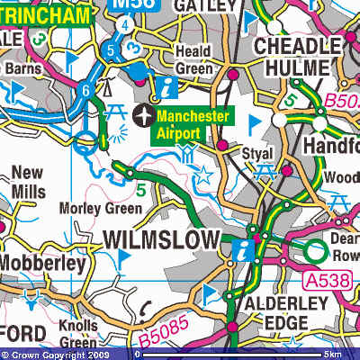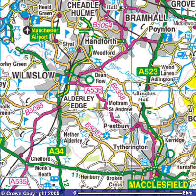 Wilmslow, where Frank Barstow Grimshaw was born, is southeast of Manchester Airport as shown in the two maps below