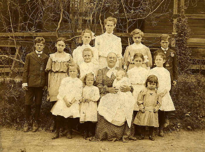 First Row: Edna Frueh; Hilda Nelson; Emma Nelson (On Rebecca Grimshaws lap); George L. Grimshaw