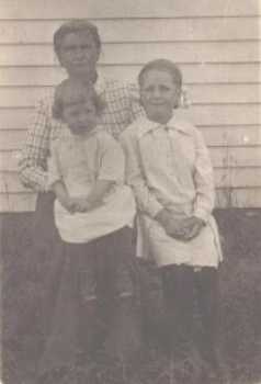 Nettie (Glass) Merritt Grimshaw with her son Jay and sister Rose (Jay was raised by Rose). Nettie is the woman on the right, and Rose is in the center. The identity of the woman on the left is unknown (Photo courtesy of Marie (Zastrow) Grimshaw. Date of photo is unknown.)