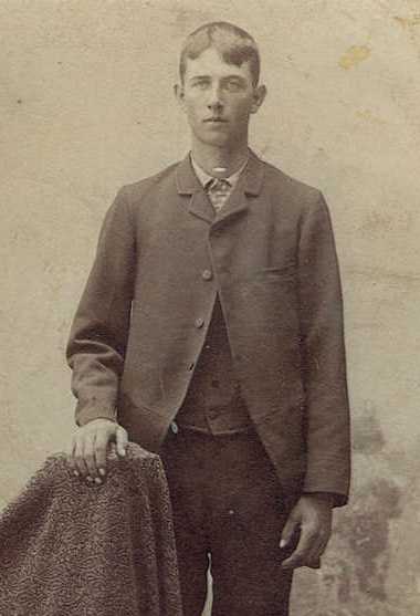 William Allen Grimshaw as a Young Man. (Photo courtesy of Marie Grimshaw, August, 2000. The clothes he was wearing indicate that this photo may have been taken on the same day as the photo above, in about 1891.)