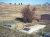 Graves of George and Aris Grimshaw at Presho, South Dakota. The two graves can be seen on the left side of the upper photo. The grave of their son, Walter, can also be seen just to the right of the tree on the right side of the upper photo. A closeup of the gravestones of George and Aris is in the lower photo. A closer view of Walter’s grave is given below. (Taken June 1999.)