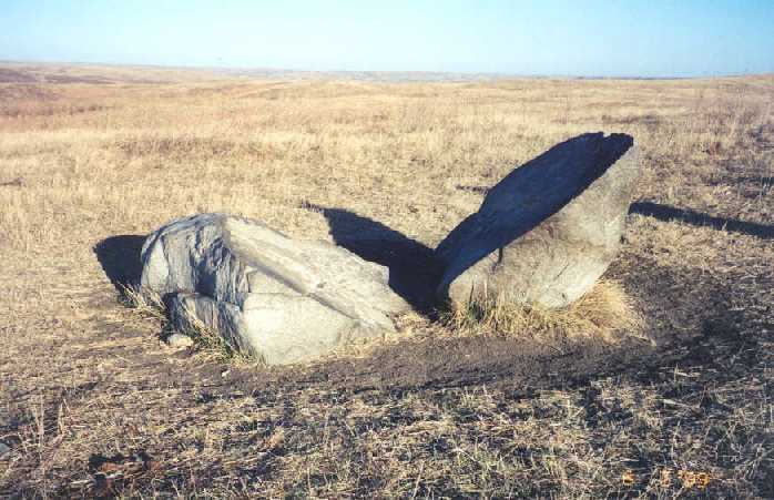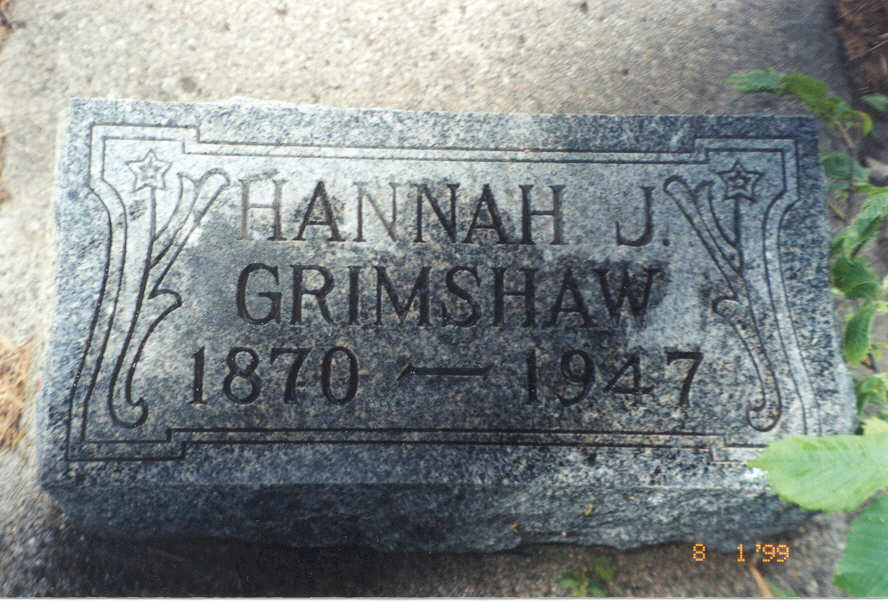 Graves of William and Hanna Jeannette (“Nettie”) Grimshaw at Reliance, South Dakota. The grave behind theirs is that of their son, Fay Grimshaw. Double click on the icons to see the full-size photo. (Taken June 1999; please ignore the incorrect dates stamped on the photos)