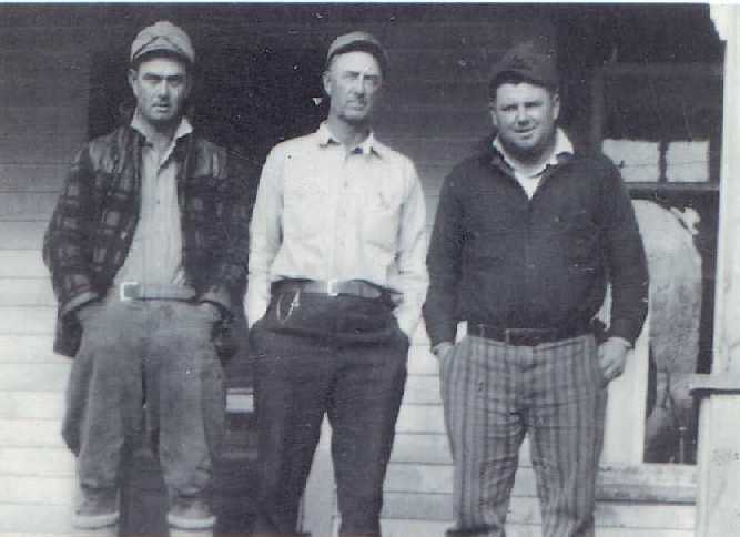 William Allen in later years (center), with two of his sons, Cleatus (left) and Walter or “Doc”. (Photo courtesy of Dorothy (Zastrow) Grimshaw. Date of photo is unknown.)