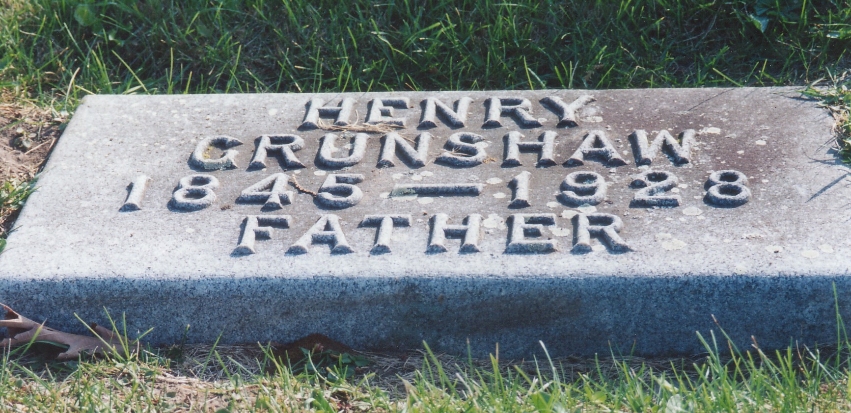 Henry Grunshaw, grandson of Amos and Mary Grimshaw and son of George Grimshaw, is buried in Ironton, Wisconsin with his wife, Mary (Greenhalgh) Grimshaw.