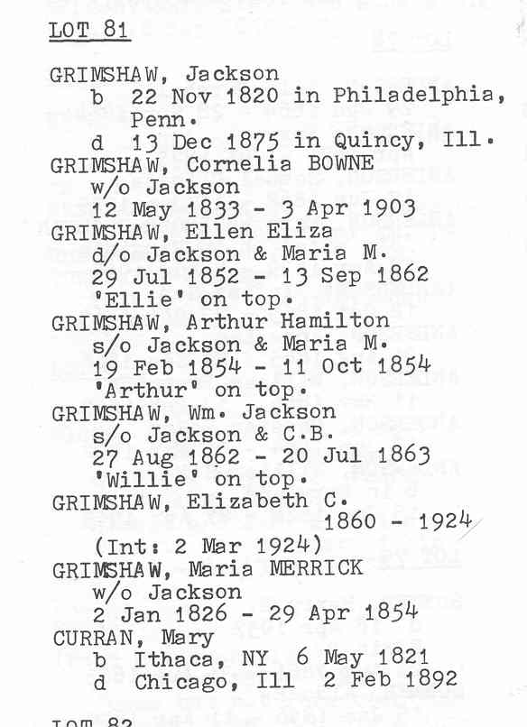 |—–|—–|—–Jackson Grimshaw* (22 Nov 1820 – 13 Dec 1875) & Maria Merrick Bush (2 Jan 1826 – 29 Apr 1854)