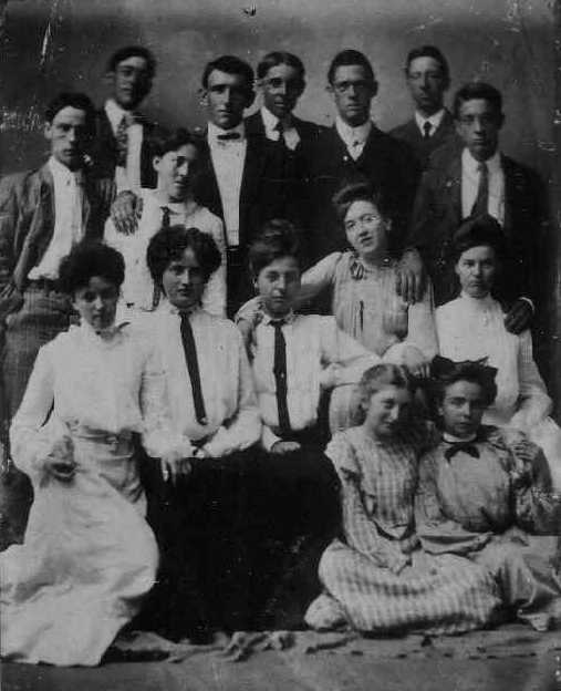 VA and Ella Herbert engagement picture: group family picture of Ella Augusta May and Voorhees Allen Herbert, 1909??, 3rd from the left, S. Franklin VanSise, in front of him, Flora May VanSise.