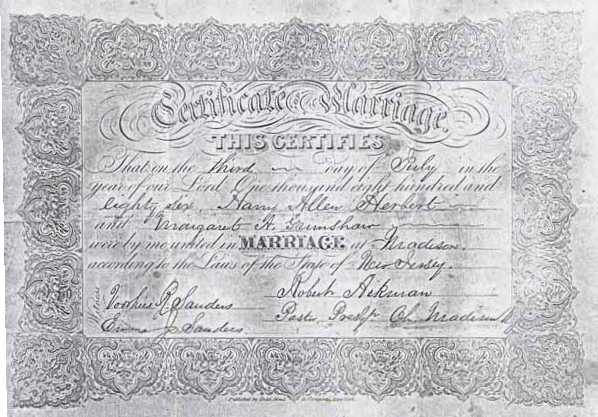 Marriage Certificate of Marguerite Grimshaw and Harry Allen Herbert