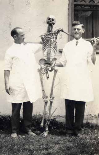 I’m also attaching a couple more pictures of VA Herbert, my grandfather… and his truck, from Long Island, NY. He met my grandmother, Ella Augusta May, at church. She played the organ. He owned a hardware store, I do believe, and sold it, bought a brand new Pierce (sp? Pearce) Arrow, which I have pictures of by the way, and packed up his family of 4 girls, and wife, and hired a driver, and moved to CA. My Mom was 12, so about 1926. They settled in the Glendale, CA, area. My Grandfather, then, went back to school and became a DOCTOR!! He was, of course a Mason and a Shriner, too. How he did all that with 4 girls, don’t know. He ended up practicing in Beaumont CA…..during WWII. We’ve always had a strong sense of “medicine” in our family. I have a picture of him next to a skeleton. Pretty funny.