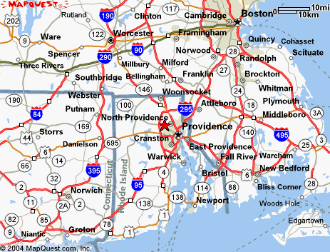 Location of Greystone near North Providence, RI (red stars in center of maps).