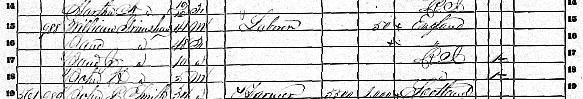 Other Grimshaw Families in the U.S. Census Records for 1860, 1870, and 1880