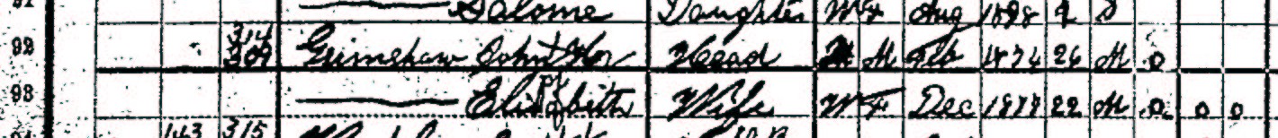 Census records are available for John and Elizabeth for each decade from 1910 through 1930 and are shown below with the family members included in each. The images were provided by Jim Grimshaw.
