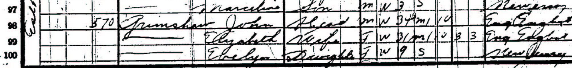 U.S. Census Records for John and Elizabeth Grimshaw in Newark, NJ