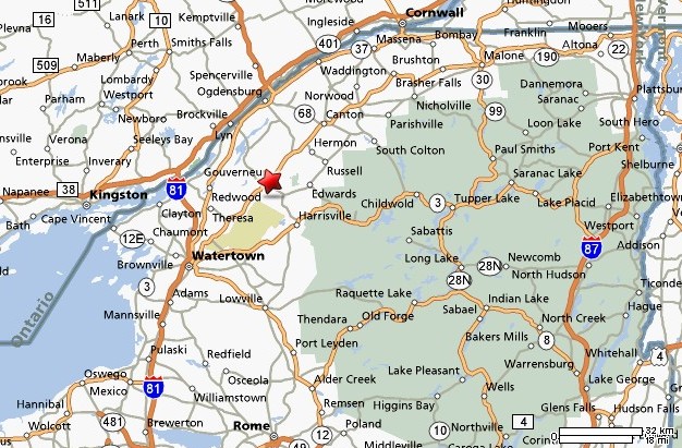 The following map shows the locations of Gouverneur and includes Canton, Russell, DeKalb and Hermon. Levi Grimshaw is buried in Canton.