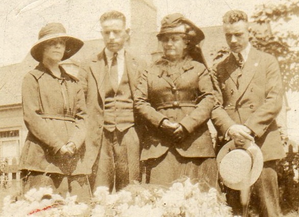 The following photo was apparently taken at the time of William’s death in 1920 and includes, from left to right, Lillian, William Charles (Junior), Helen (William’s wife), and James (Minto) Grimshaw.