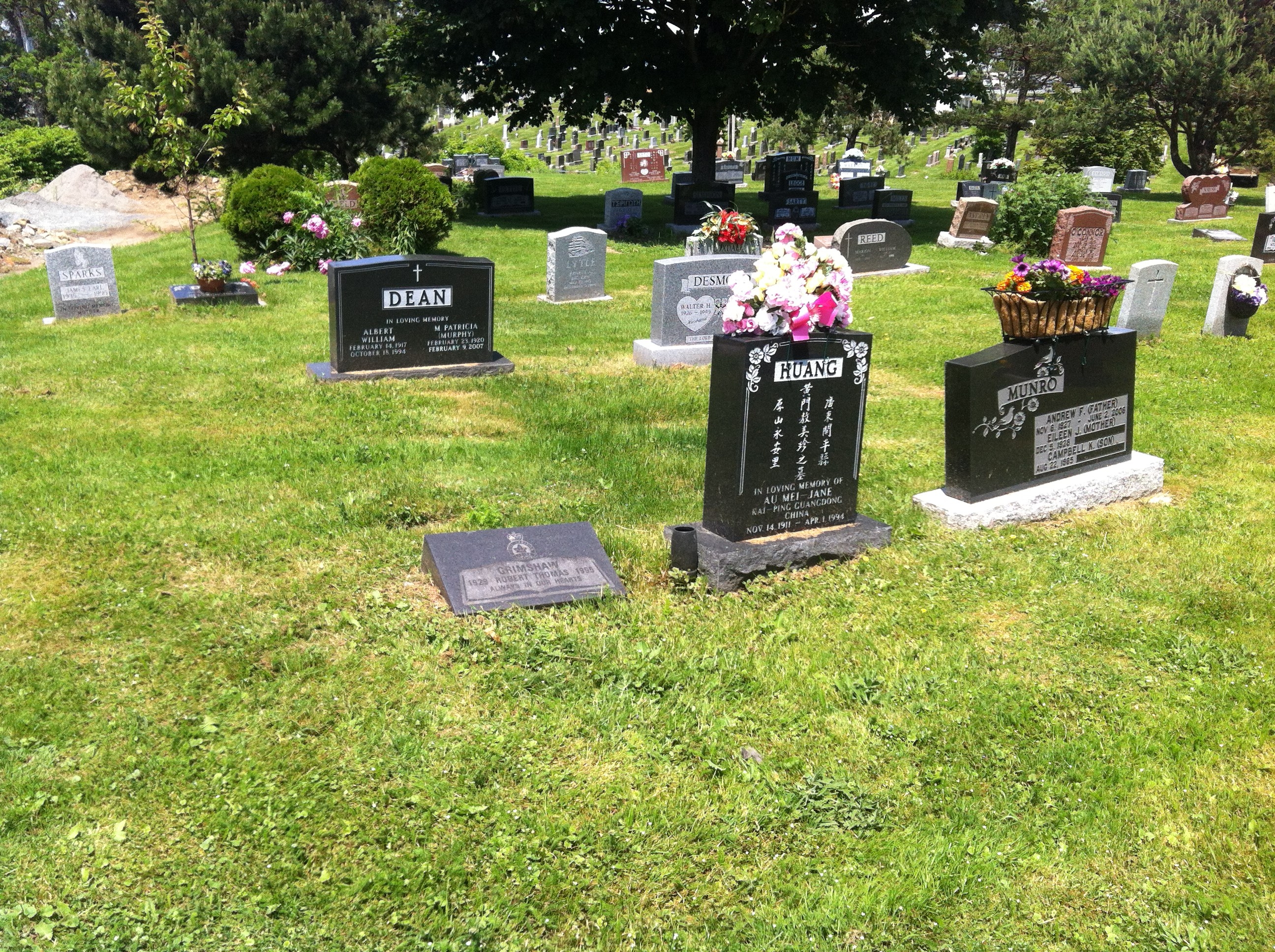 William and Elizabeth Grimshaw’s grandchild, James Edward, is buried in Fairview Lawn Cemetery, Halifax, Nova Scotia. In addition one great-grandchild, Robert Thomas Grimshaw (son of James Edward and Eileen Grimshaw), is buried in the same cemetery. Photos of the gravestones were taken by the website author during a visit to Halifax in June 2012.