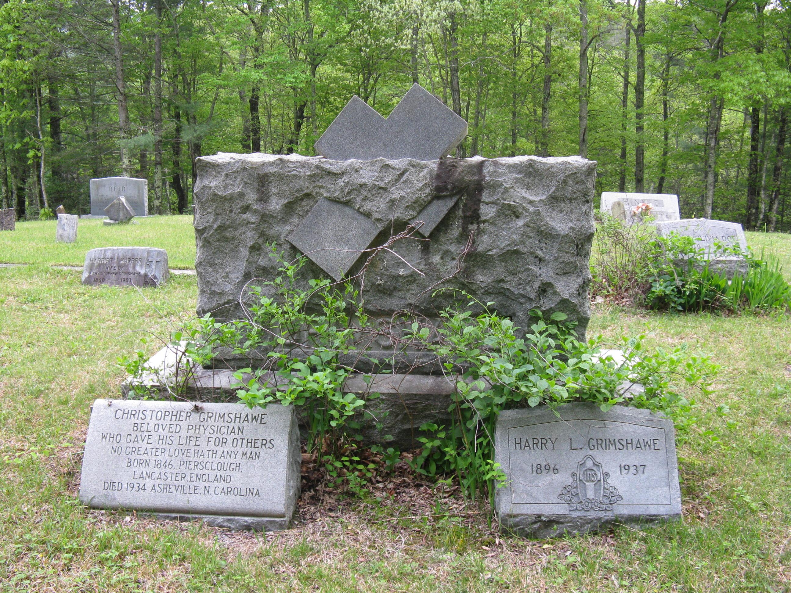 Their fourth son, Thomas, and his wife Elizabeth (Bolton) Grimshaw, continued to live at the Grimshawe location after Thomas and Helena departed and are buried with two of their children at nearby East Flat Rock, North Carolina. This couple tragically lost four daughters between the ages of 2 and 7 to diphtheria within eight days in 1988. One daughter, apparently a twin to one that died, lived to be over 100 years old and is buried in East Flat Rock with Thomas and Elizabeth. The fifth son, Christopher, and his wife Hattie (Harper) Grimshaw also lived in the vicinity of Cashiers; they – and several descendants – are buried in nearby Bohaynee cemetery.