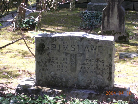 From there they went north to Gatehouse in Scotland, where Mr. Grimshaw died in 1903.