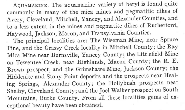 Pratt, Joseph H., ca 1932, Gems and Gem Minerals of North Carolina: Journal Mineralogical Society of America, p. 148-59 (p. 51).