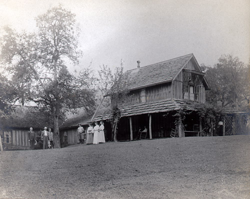 “Foot-log and Ford, Grimshawe’s”; group, some on foot,. some on horseback. The community originated as a settlement of several members of the Grimshawe family in the 1870’s.