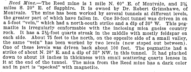The Grimshawe family was apparently quite involved in mining in the Cashiers area. There were apparently Grimshawe mines in Jackson County and in Transylvania County as well as a Reed Mine, also in Transylvania County.
