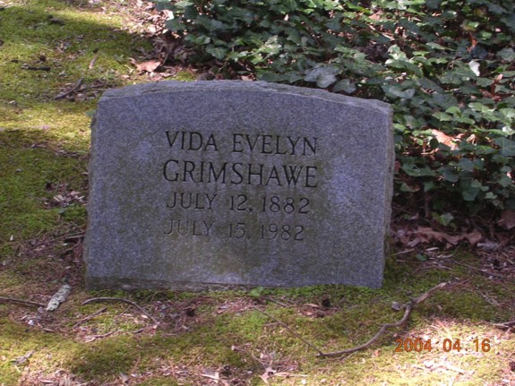 Thomas and Elizabeth (“Bessie”) (Boulton) Grimshawe are buried in Saint John in the Wilderness Cemetery in East Flat Rock, North Carolina with two apparent children — Vida Evelyn and J Leeming Grimshawe — as shown above on this webpage. Interestingly, Vida Evelyn’s gravestone indicates that she was born on July 12, 1882, so she would have been six years old when the diphtheria catastrophe struck. Since Mary was also age six (see above gravestone record), Vida and Mary must have been twins, and Vida survived the tragedy. She lived to be 100 years and three days old (died in 1982). J Leeming Grimshawe was born April 7, 1893, almost five years after the death of the four sisters.