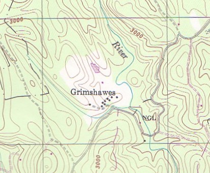 “Grimshawe’s, N.C.” Grimshawes is located at the head of the Chattooga River in south Jackson County .