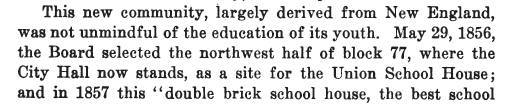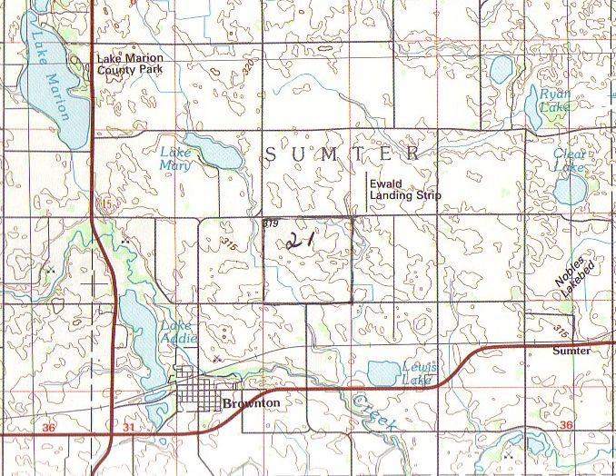 In the spring of 1857 Samuel B. Brown, accompanied by his son, Charles H. and son in law, L. Ocobock, arrived from Freeport, Ill., and settled on a part of section 8, township 114, range 29 (now Penn Township) adjoining William Armes on the north, and after letting a contract to Armes to build a hewn log house on the land, referred to Freeport. On June 29, 1857 J.B. and W.P. Newcomb, Alonzo H. Jennison, R.L. Moore and Frank Drake arrived from Wisconsin and settled in township 115, range 29 (Sumter township). Nearly all the land between these settlements, and the vicinity of the Hutchinson, Glencoe, New Auburn and Henderson was taken in the 1856 and 1857. Small board claim shanties dotted the country in all directions. The financial crash of 1857 put a stop awhile to further immigration. During the summer Mrs. R.E. Grimshaw died. She was a very estimable lady and was greatly beloved by all who knew her.