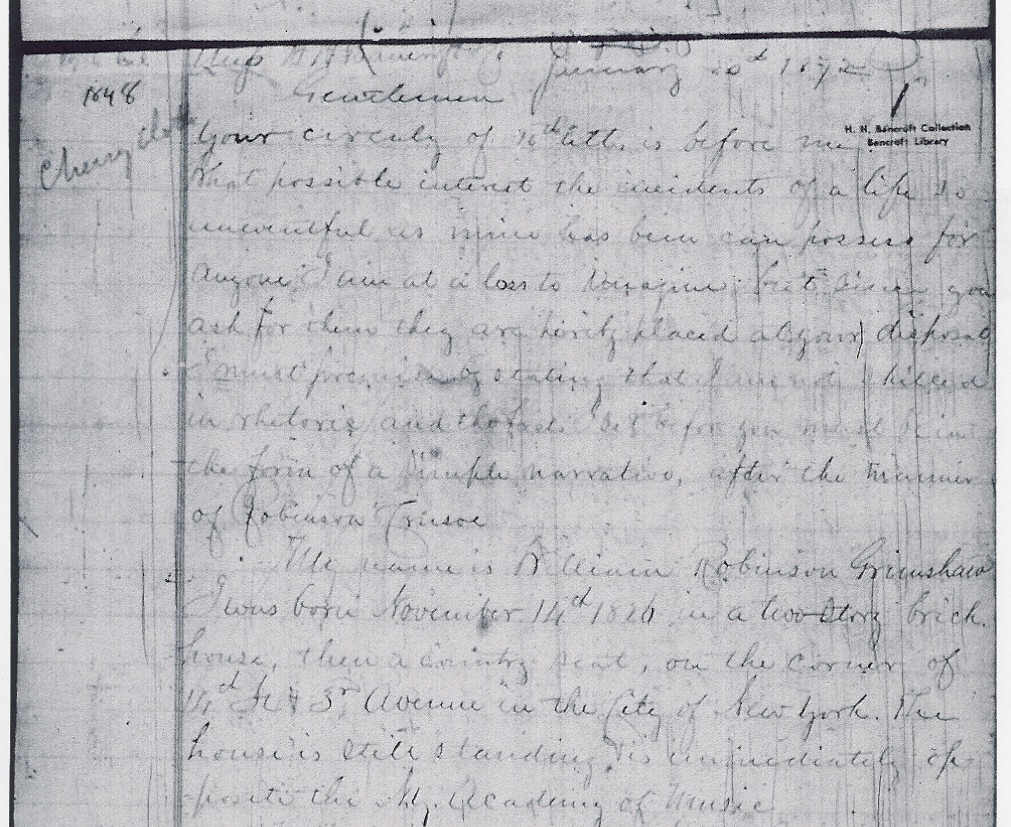 Images of Original Manuscript of Grimshaw’s Narrative from Bancroft Library