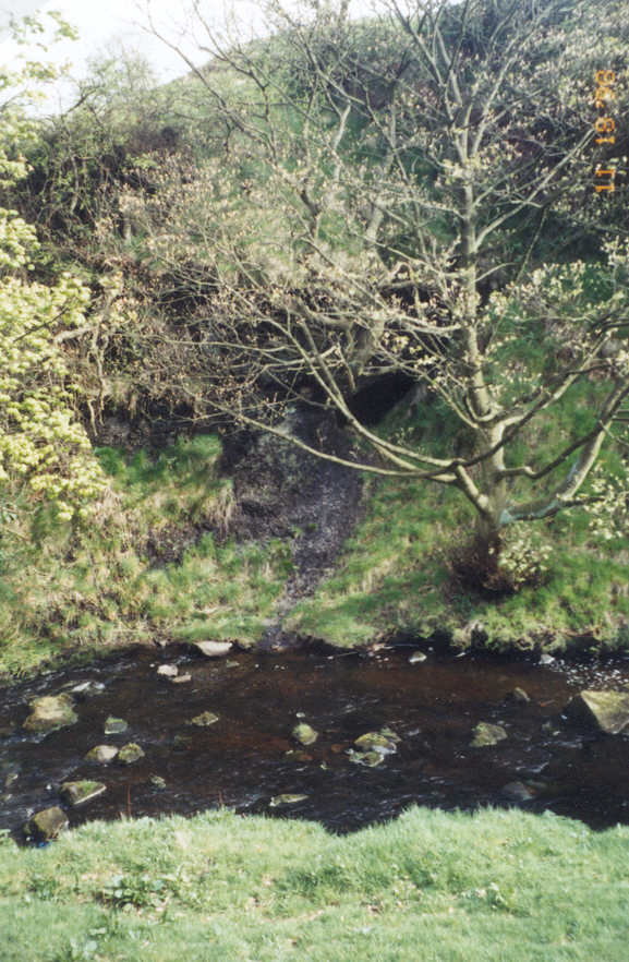 A coal mine opening in the bedrock is located in the streambed of Grimshaw (Waterside) Brook near Luddington. It is shown in the upper two figures at the bottom of this webpage.
