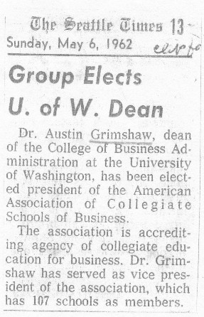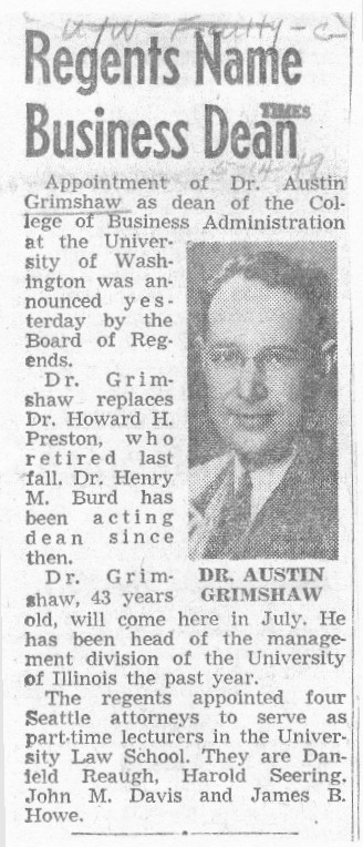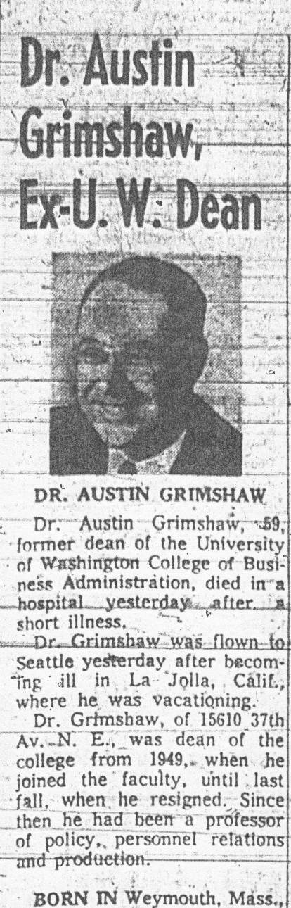 During his tenure as dean, several articles were published on Austin Grimshaw. They are shown below, from the Special Collections of the University of Washington Library.