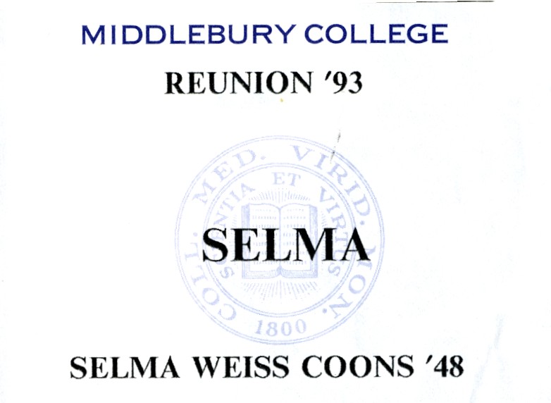 Fortuitously, there was a copy of the following name tag in the book purchased for this webpage, indicating “Sel” to be Selma Weiss Coons, the apparent recipient of the book.
