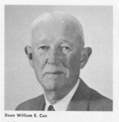 The present dean, William E. Cox, has made no drastic changes in the policy of the college, but has succeeded in liberalizing the curriculum and has personalized the friendship between faculty members and students. f)ean Cox came to the University in 1919 with primary interest in accounting, and an educational background at the Universities of Texas, Stanford, California, Chicago, and Harvard.