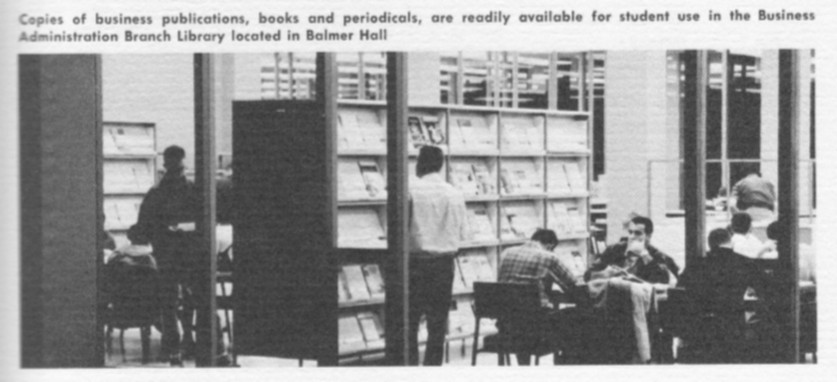 Copies of business publications, books and periodicals, are readily available for student use in the Business Administration Branch library located in Balmer Hall