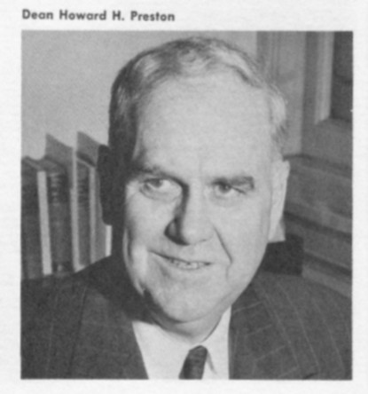 Dean Coon’s successor, Professor Howard Preston, had served on the faculty of the College as an authority in money and banking since the early 1920’s, following the completion of his doctorate at the University of Iowa in 1920. During this time, as under prior deans, the College combined the curriculum and faculties of business and economics, but in 1948, at the time of Dean Preston’s resignation to resume his teaching career, the economics segment was transferred to the College of Arts and Sciences. The reconstituted College of Business Administration retained college status. A change in title to the School of Business administration, a return to the name at the founding date of 1917, was made in 1967, following the change a year earlier to the name Graduate School of Business Administration for graduate programs.