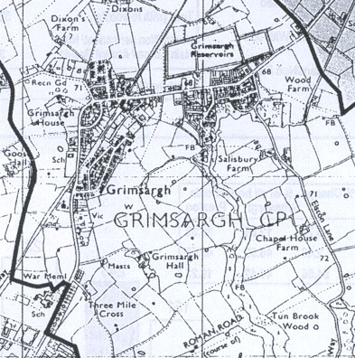 Elston, thought to be restricted to a single meadow close to the Ribchester to Preston Roman Road. The exact period of the earthwork site is subject to conjecture but could be of medieval origin. It was first recorded here in October 1991, and represents a moated site. According to the occupiers of Marsh House the complex of ditches and platforms frequently attracts people with metal detectors. On the west side of Elston Lane close to Chapel House Farm and approximately 1,000 feet from the earthworks was once the site of an ancient cross. This raises the exciting prospect that the earthworks may represent an earlier phase of settlement at Grimsargh, long before the village was developed on its present site.The first nineteenth-century Ordnance Survey maps record the existence of four medieval crosses on the six miles of road leading out of Preston in a north-easterly direction through Grimsargh to Longridge. It is believed that the crosses were erected some time between AD 1100 and 1400. In the historical literature Grim, sargh Cross is described as: A pedestal of a stone cross, three and three quarter miles north-east from Preston Market Place, on the south side of the road, and one eighth of a mile south of Grimsargh Church. The words Three Mile Cross appear on the map close to the pedestal. It is possible that some of the numerous crosses shown on the map of Blackburn hundred, between Long, ridge and Whalley, were placed there for the guidance of travellers over those wild moors, so forming a complete series from Preston to Whalley Abbey. If this route between Preston and Whalley were taken, a distance of about fifteen miles, there would be almost a continuous range of crosses including those at Ribbleton Lane, Ribbleton Moor and Three Mile Cross at Grimsargh.