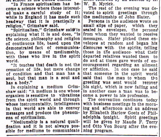2Helfert, J.E., 1925, “Explaining Spiritualism in Exclusive Interview with a United Press Representative”, in Sheboygen (Wisconsin) Press, October 21, 1925, p. 2, col. 1 and 2.